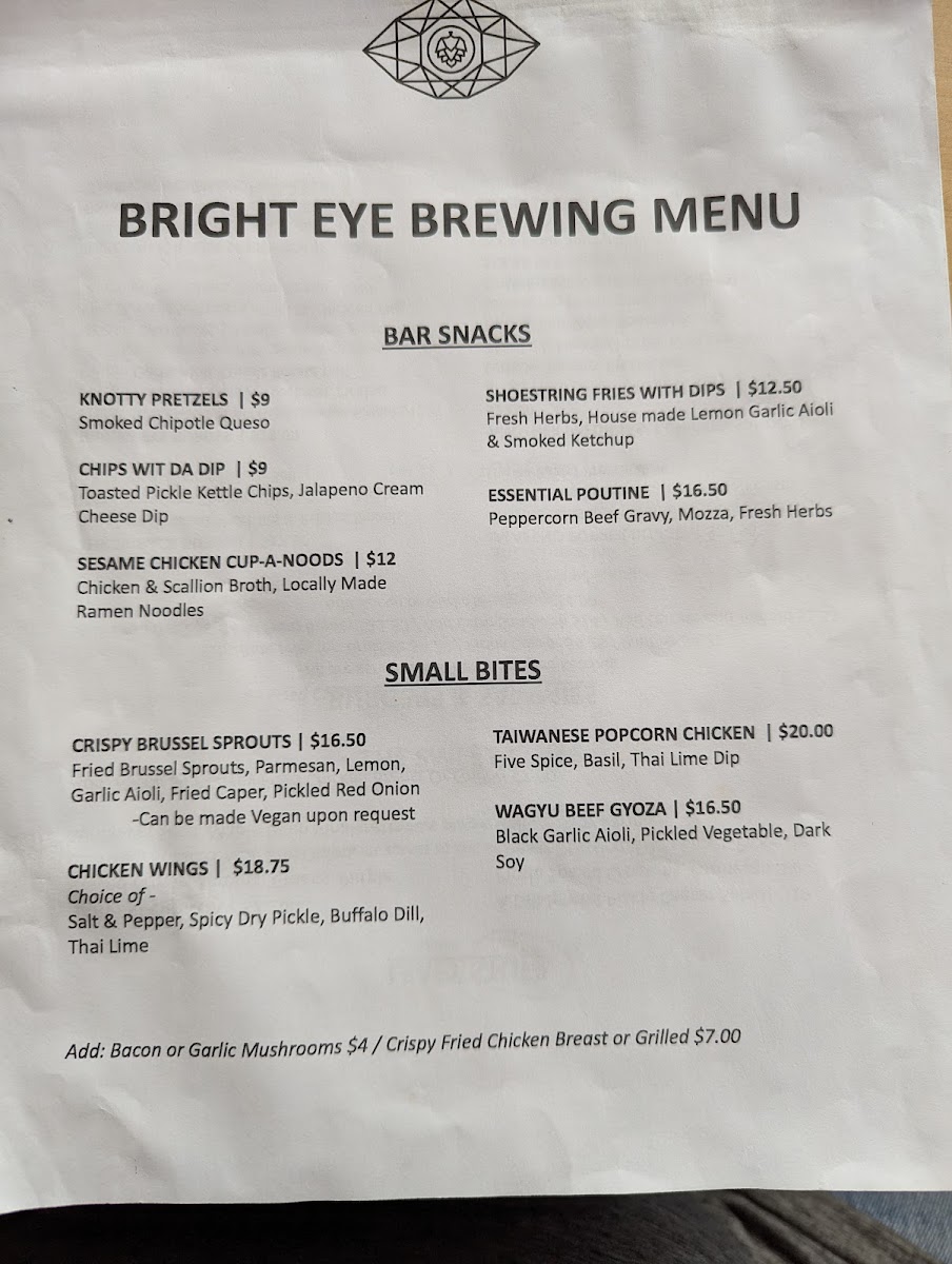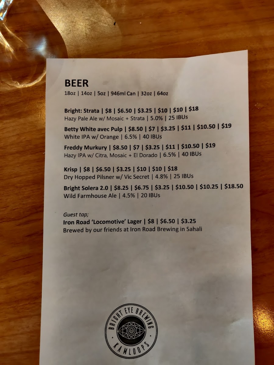 Welcome to Bright Eye Brewing, a vibrant brewery located in Kamloops, BC. This gem on 292 Tranquille Rd offers a delightful menu that pairs superbly with an impressive selection of craft beers and ciders. Patrons rave about the atmosphere, characterized by airy spaces and friendly service that instantly makes you feel at home.